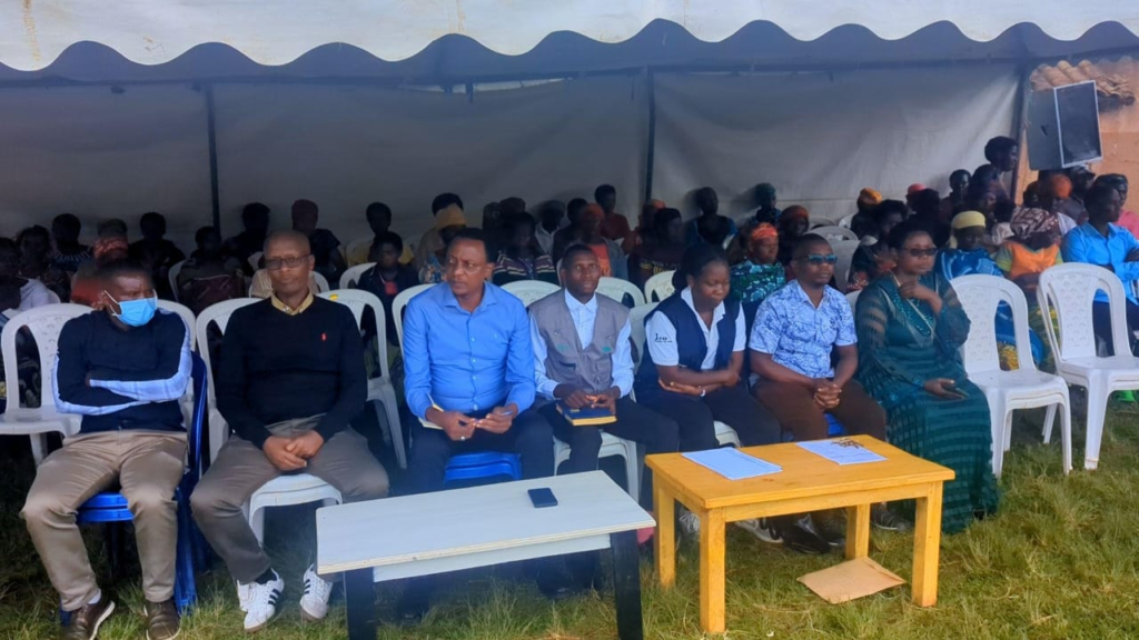 Residents of Gishamvu Sector attend a PRISM nutrition awareness campaign promoting the consumption of animal-source foods in Huye District.